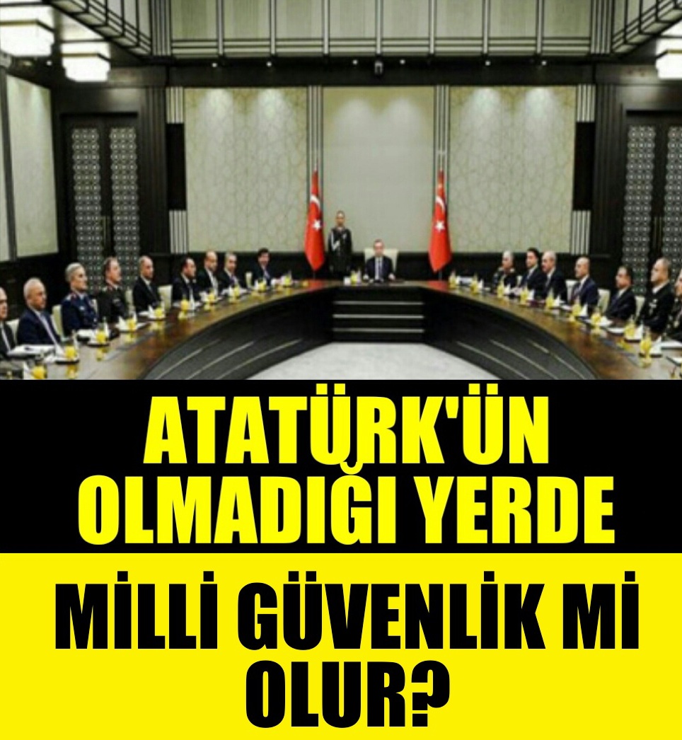 Türkiye Cumhuriyeti Devleti’nin kurucusu, Türk Milleti’nin Büyük Başbuğu Atatürk’ün MGK toplantısında her zaman hazır bulunan resmininin kaldırıldığını milletçe müşahade etmiş bulunuyoruz.