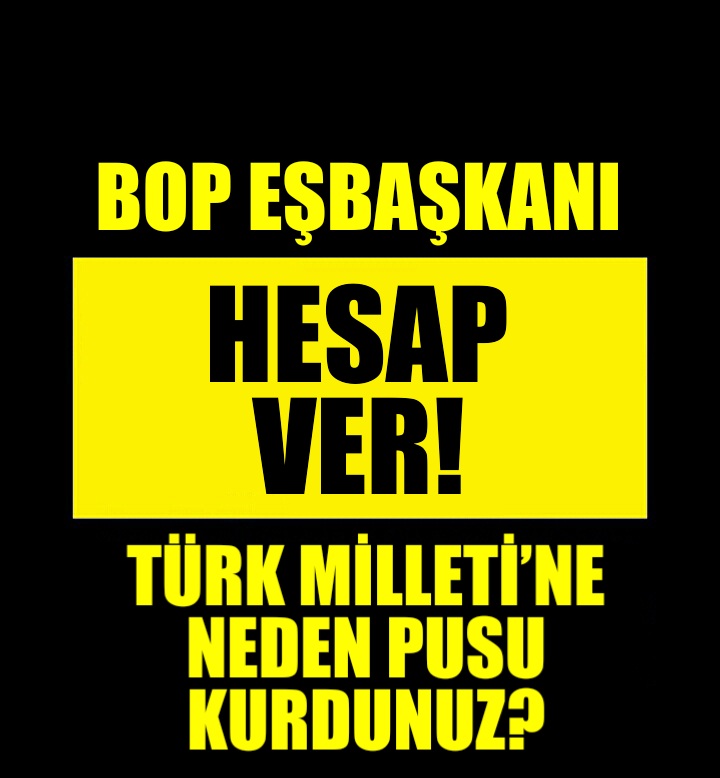 Büyük Türk MİLLETİ’nin iradesini temsil eden TBMM, ivedi olarak BOP EŞBAŞKANLIĞI ve BOP konusunu aydınlatmalıdır.