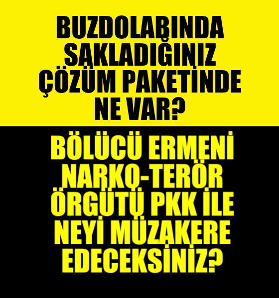 Dünyanın en büyük ordularından birine sahip Büyük Türk Milleti bu kuduz sürüsüne yenilmiş midir de “aman biz ettik sen etme” dercesine bu aşağılık kuduzlarla masaya oturacak ve müzakerede bulunacak ?