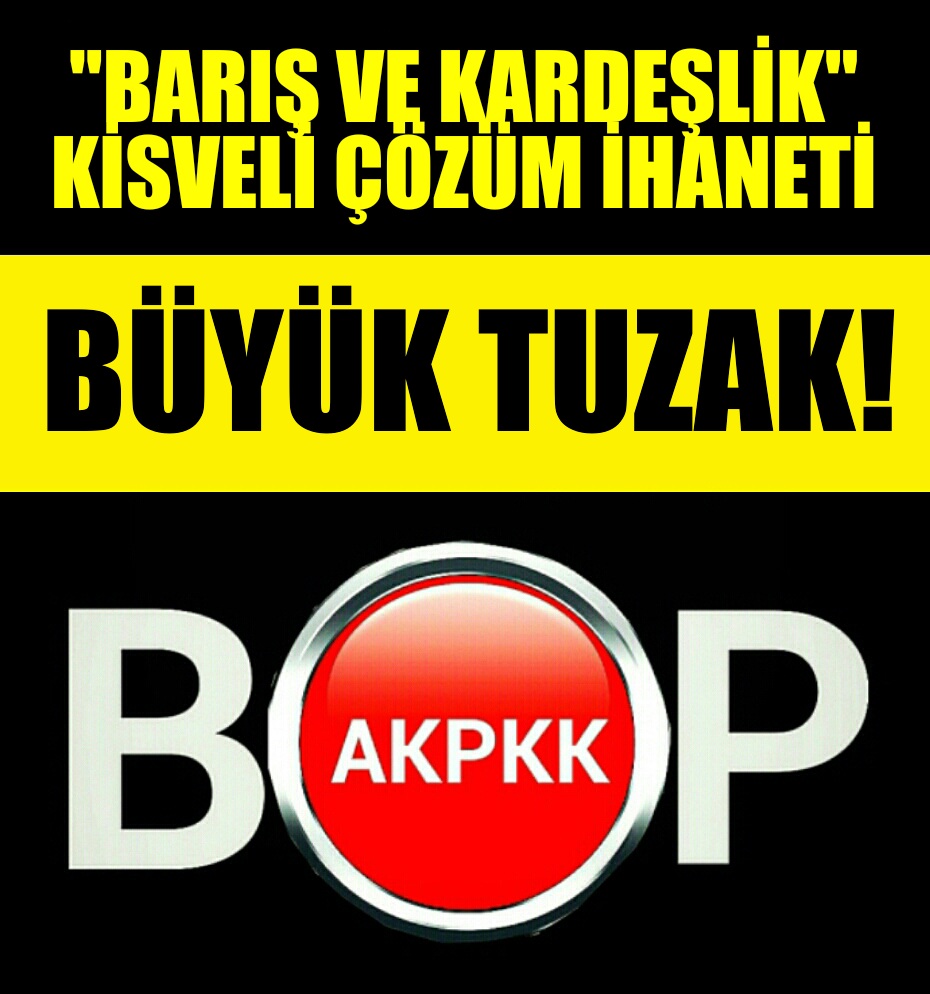 AKP-HDP-PKK , BOP için birlikte çalışan, kamuoyunu sözde “çözüm” ile hipnoza alan, çatışmalar ile Büyük Türk Milleti’ni yılgınlığa ve ümitsizliğe düşüreceklerini zanneden, Davos mizanseni gibi bir mizanseni yürüten, Türkiye Cumhuriyeti Devleti’nin üniter yapısını ortadan kaldırmak için çalışan, ihanet için sözde “çözüm” sürecini buzdolabında bekleten ve ruhlarını BOP’a adamış yol arkadaşlarıdır.