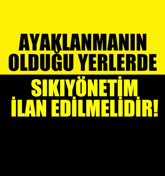 Her devletin kendisini koruma refleksi vardır. Türkiye Cumhuriyeti Devleti’nin bekası için, ayaklanmanın olduğu yerlerde sıkıyönetim ilan edilmelidir.