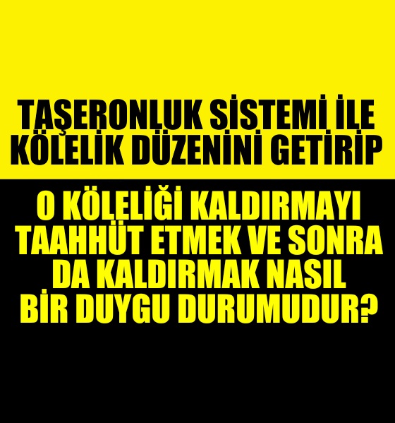 TAŞERONLUK SİSTEMİ İLE KÖLELİK DÜZENİNİ GETİRİP, O KÖLELİĞİ KALDIRMAYI TAAHHÜT ETMEK VE SONRA DA KALDIRMAK NASIL BİR DUYGU DURUMUDUR?
