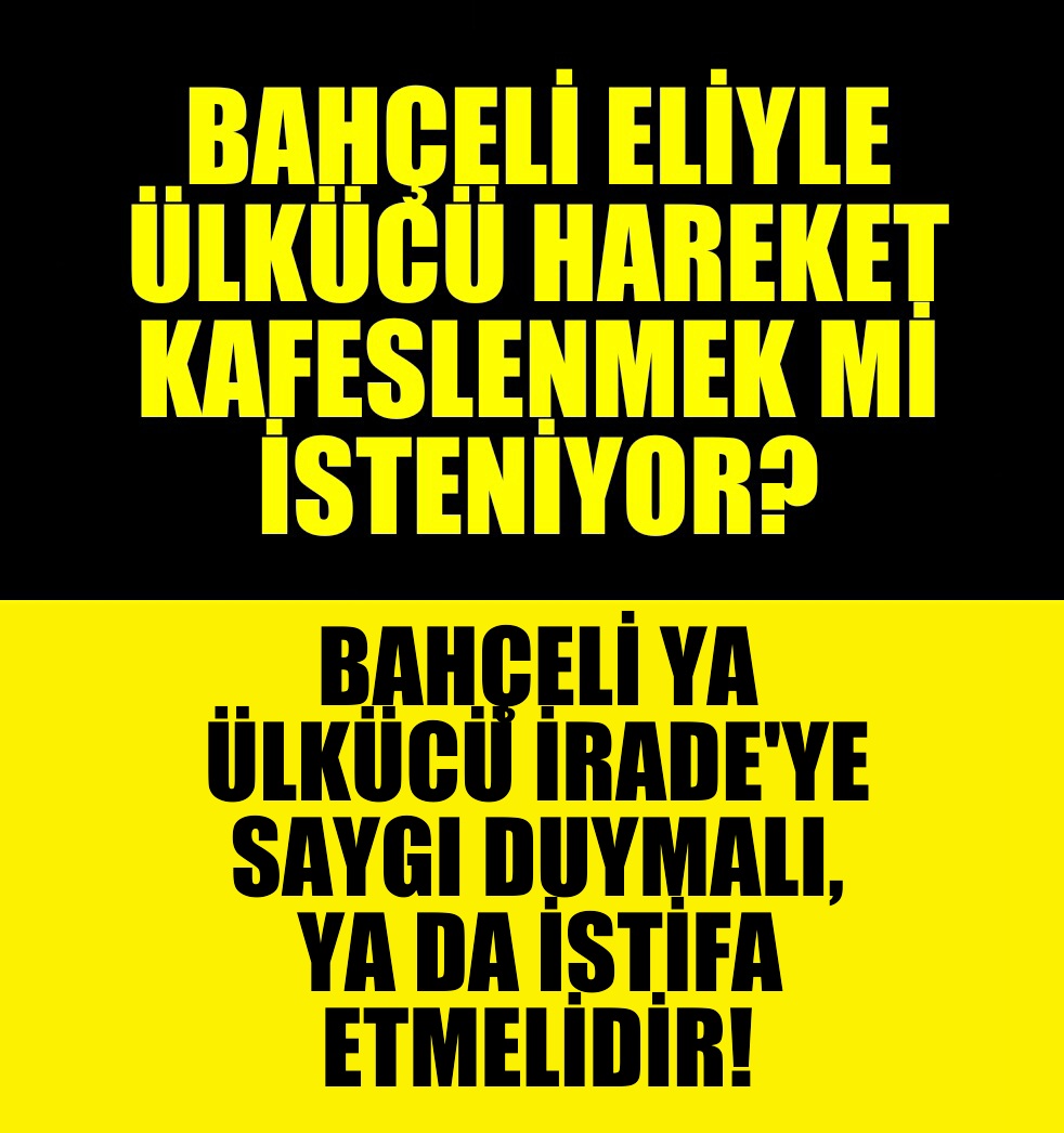 MHP GENEL BAŞKANI DEVLET BAHÇELİ, YA ÜLKÜCÜ İRADE’YE SAYGI DUYMALI, YA DA İSTİFA ETMELİDİR.