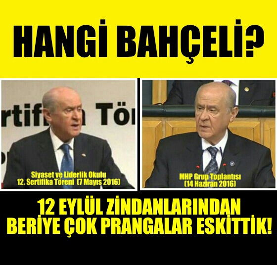 7 Mayıs 2016 tarihinde Siyaset ve Liderlik Okulu 12. Sertifika Töreni’nde “ Hükümete verdiğimiz fiili destek hukuki boyuta dönüşebilir” diyen Bahçeli’yi alkışlayanlar, dün de Erdoğan’a ve AKP Hükümeti’ne salvoları alkışladı.