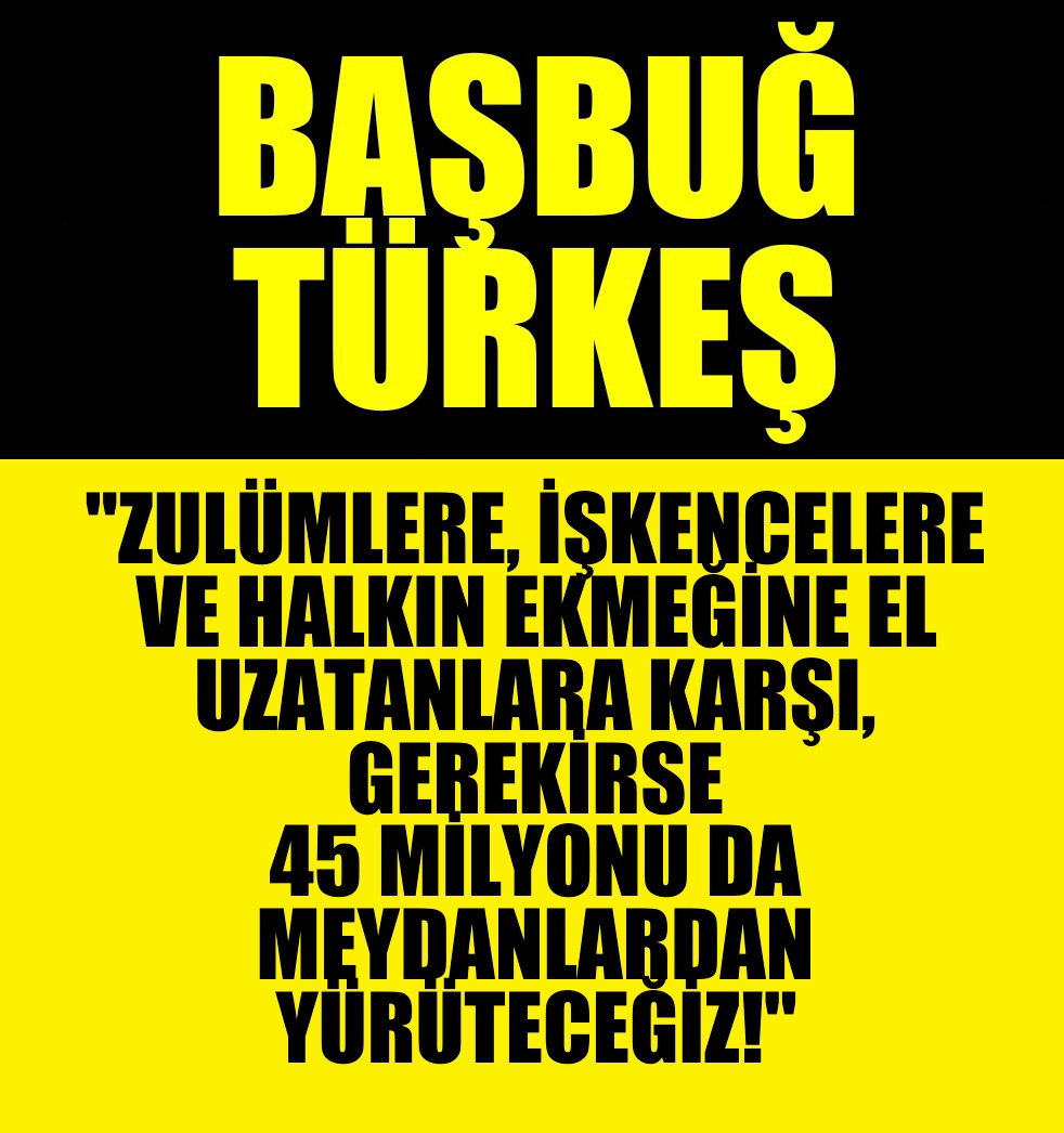 Zulümlere, işkencelere ve halkın ekmeğine el uzatanlara karşı, BAŞBUĞ TÜRKEŞ, “GEREKİRSE 45 MİLYONU DA MEYDANLARDAN YÜRÜTECEĞİZ” demişti!