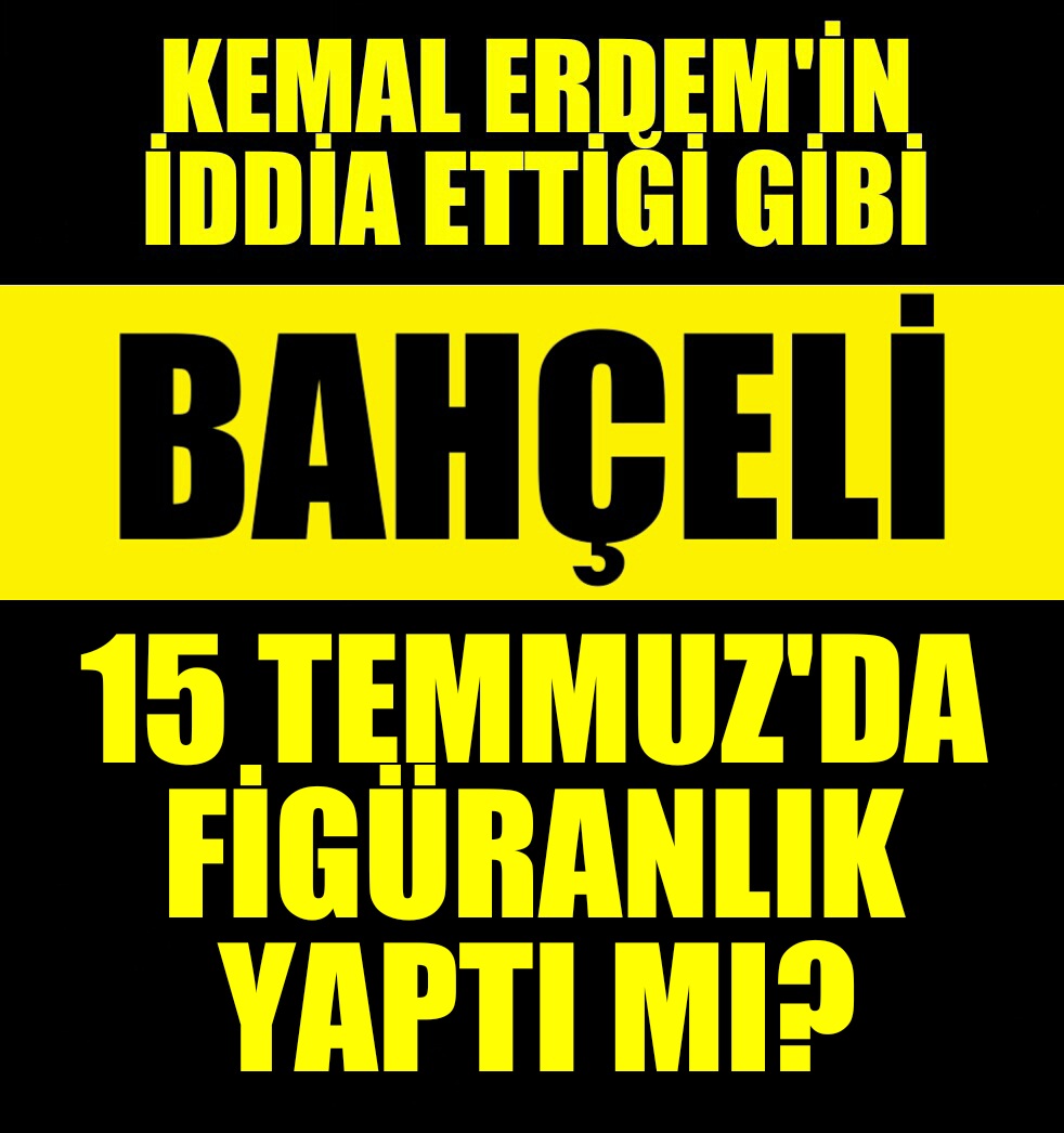 Tekzip ettiniz mi sorumuza ilaveten yeni bir soru soruyoruz, Sayın Devlet Bahçeli Kemal Erdem’in iddia ettiği gibi “15 Temmuz’da Erdoğan’ın Darbe Oyunu’nda figüranlık yaptı” mı?