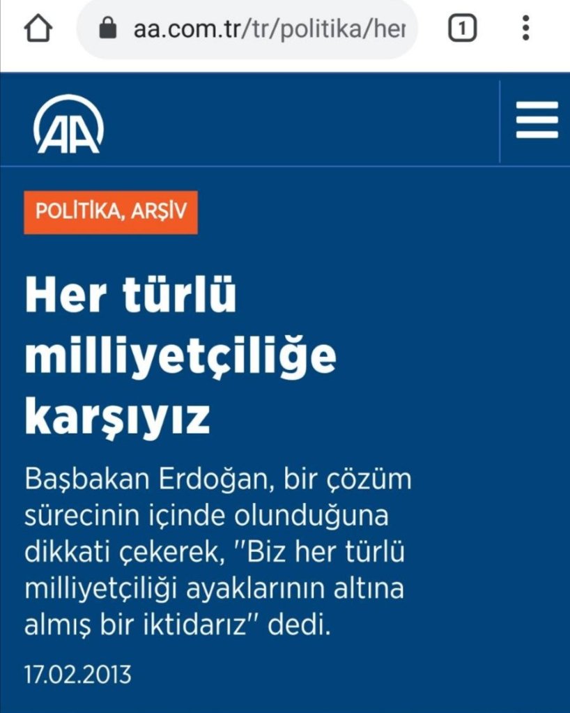 17 Şubat 2013 tarihinde dönemin başbakanı toplu açılışlar için gittiği Mardin Midyat Köşk Meydanı’nda yaptığı konuşmada “Biz her türlü milliyetçiliği ayaklarının altına almış bir iktidarız.” demişti.