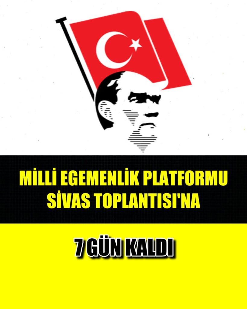 7 Eylül 2024 tarihinde Sivas’ta yapılacak olan Milli Egemenlik Platformu’nun toplantısına bütün vatanseverler davetlidir.