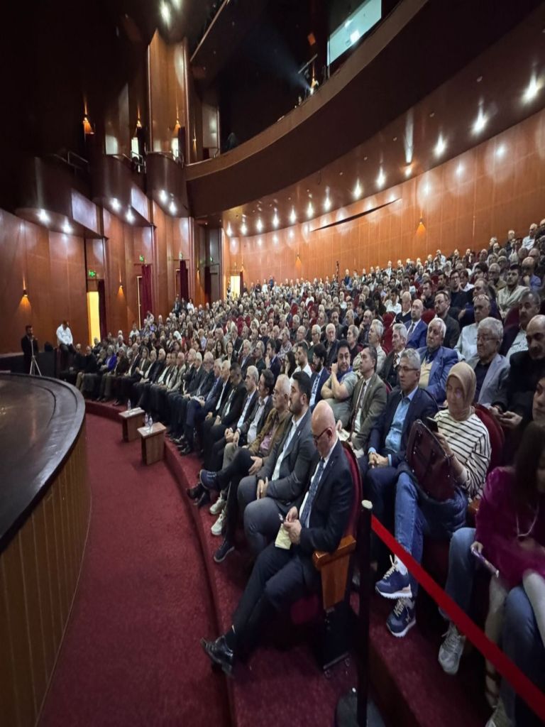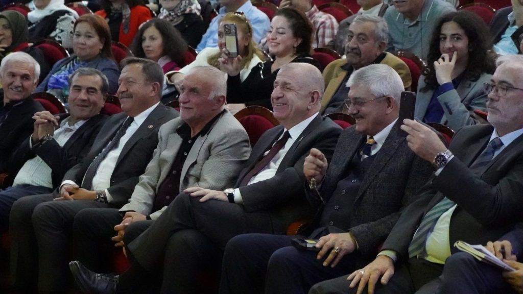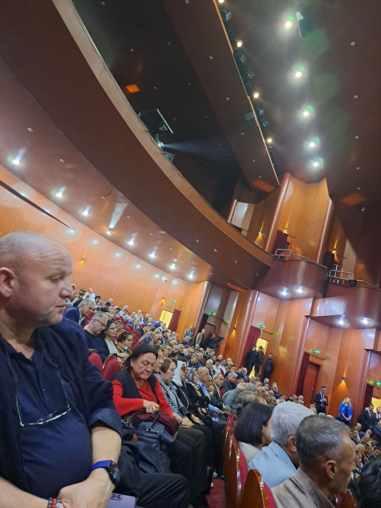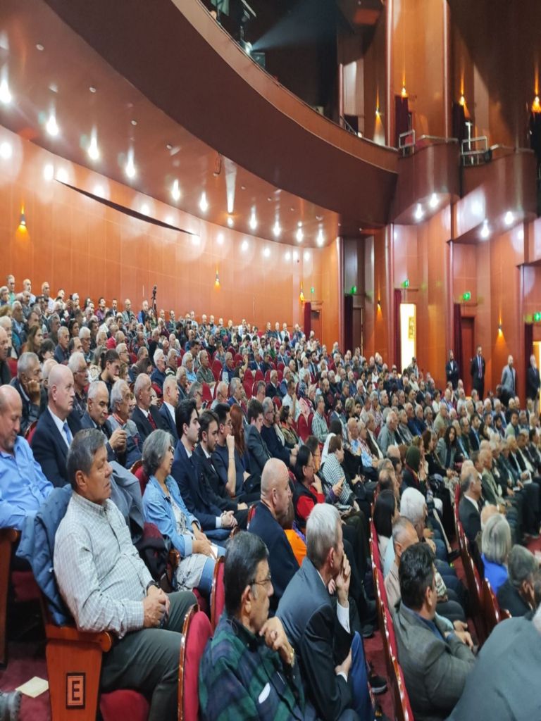 Siyaset, medya ve fikir dünyasından geniş bir katılımın olduğu toplantının yapıldığı ABB Büyük Tiyatro Salonu coşkulu ve hıncahınç doluydu.