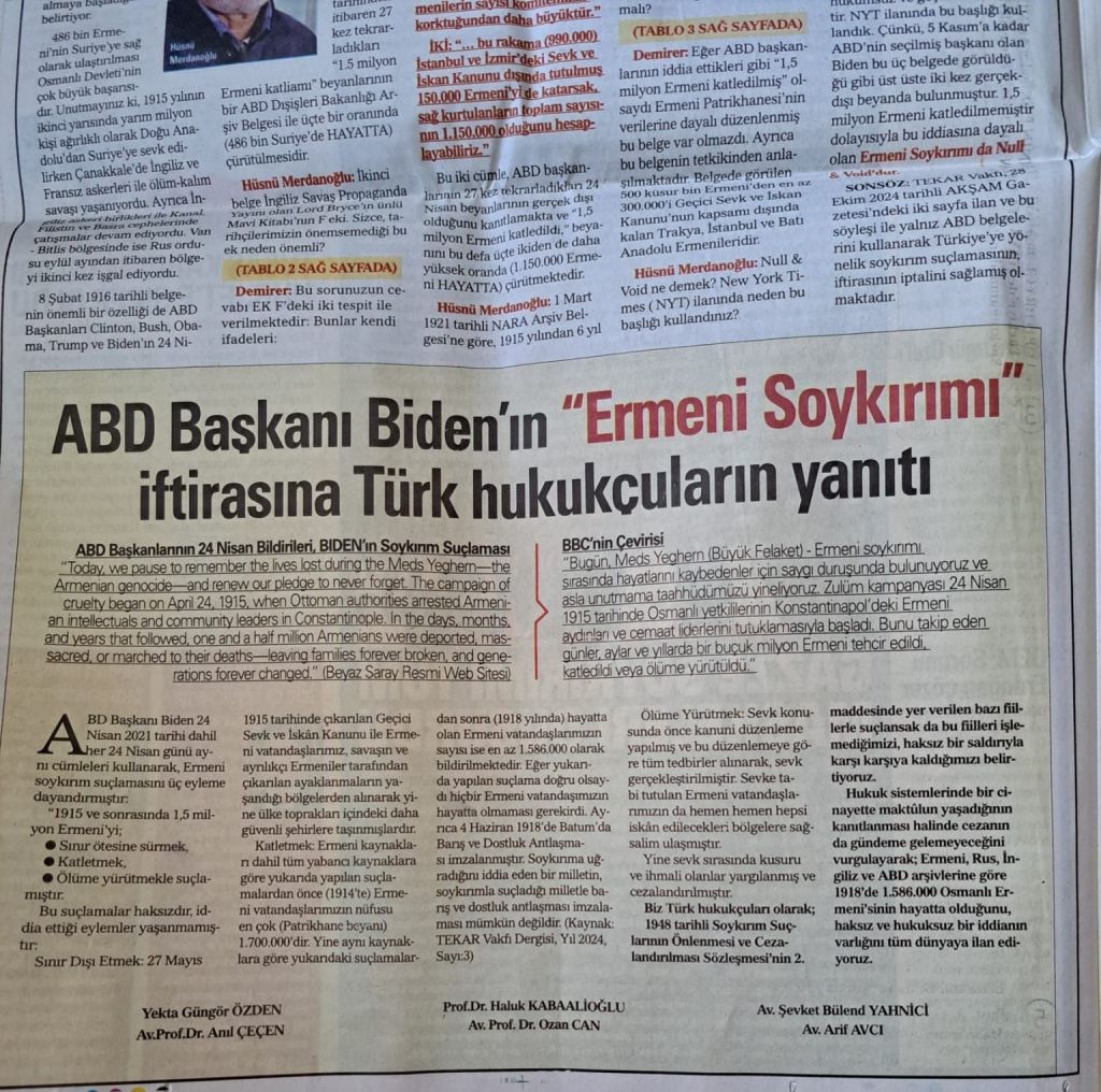 Ankara’da kurulu ve faaliyet göstermekte olan TEKAR Vakfı (Türk Ermeni Konusunu Araştırma Vakfı) mütevelli heyeti üyesi ve mensubu hukukçular olarak “ermeni soykırım yalan ve iftiraları” konusunda kamuoyunun ve Türk aydınlarının dikkatlerini çekmek ve hassasiyetlerini beklemek adına bir bildiri yayınlamış bulunmaktayız. Bildiri metni aşağıdadır. Yüz yılı aşan yalan ve iftira kampanyası karşısında dik durmak ve yalanlarını müfterilerin yüzlerine çarpmak bir vatanseverlik görevidir.
