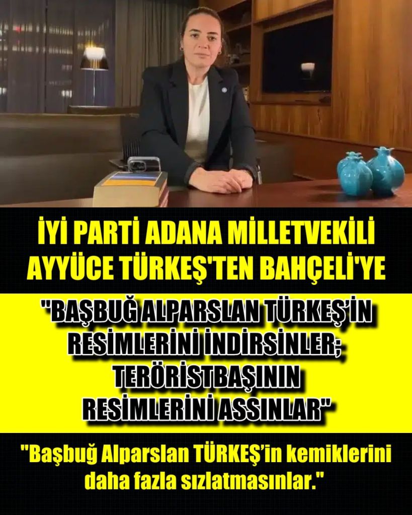 Başbuğ Alparslan TÜRKEŞ’in kızı, İYİ Parti Adana Milletvekili Ayyüce Türkeş Taş, MHP Genel Başkanı Devlet Bahçeli’nin bugünkü grup toplantısında bölücü narko terör örgütü PKK’nın başı Öcalan için yine “meclise gelsin” çağrısı için, sosyal medya X hesabından zehir zemberek bir paylaşımda bulundu.
