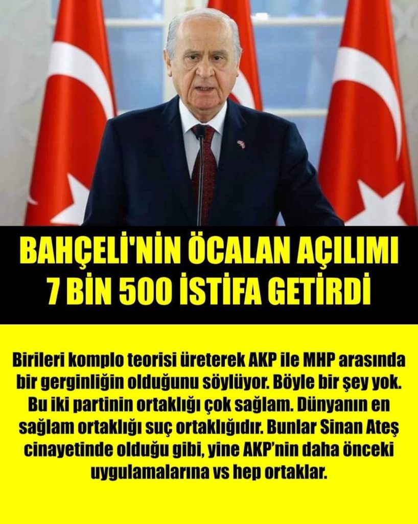 Yani Bahçeli’nin Öcalan çıkışı sonrasında MHP’den 7 bin 500’e yakın kişi istifa etti. Bu çok ciddi bir rakam.