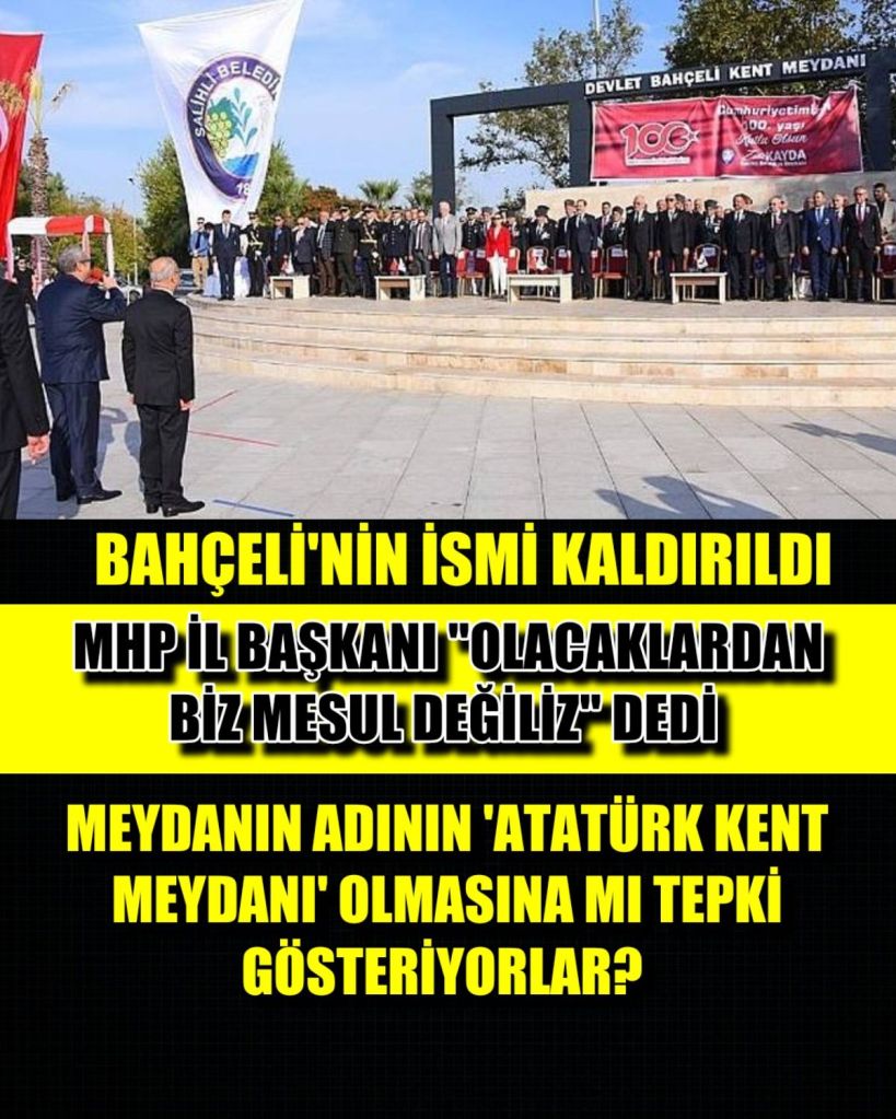 “Zafer Mahallesi’nde bulunan meydana Manisa Büyükşehir Belediye Meclisi’nin 2023 yılı kararı ile Devlet Bahçeli Kent Meydanı ismi verilmiştir. Gazi meclisimizde, 22 Ekim 2024 günü MHP Genel Başkanı Devlet Bahçeli’nin grup konuşmasında terörist başı, bebek katili Öcalan’ının affını ima ederek TBMM’de konuşmaya davet etmiştir. Ülkemizde 50 bine yakın yurttaşımızın, askerimizin, polisimizin ve güvenlik güçlerimizin şehit olmasına, 10 binlerce insanımızın gazi olmasına sebep olan terörist başının Gazi Meclise davet edilmesi kabul edilemez. Buna sessiz kalınması mümkün değildir. Bu gelişmeler karşısında ilçemizde bulunan ‘Devlet Bahçeli Kent Meydanı’ isminin kaldırılması ve meydanın isminin ‘Atatürk Kent Meydanı’ olarak belirlenmesi için belediyemize, 3198 adet dilekçe başvurusu olmuştur ve dilekçeler halen devam etmektedir. Bunlar Manisa Büyükşehir Belediyesi’ne elden teslim edilmiştir. İlçemizde yaşayan hemşerilerimizin talepleri doğrultusunda halen mevcut olan ‘Devlet Bahçeli Kent Meydanı’ adının ‘Atatürk Kent Meydanı’ olarak değiştirilme taleplerimizin Kasım ayı meclisinde gündeme alınarak kabul edilmesini Salihli halkı adına saygılarımla arz ve talep ediyorum.”