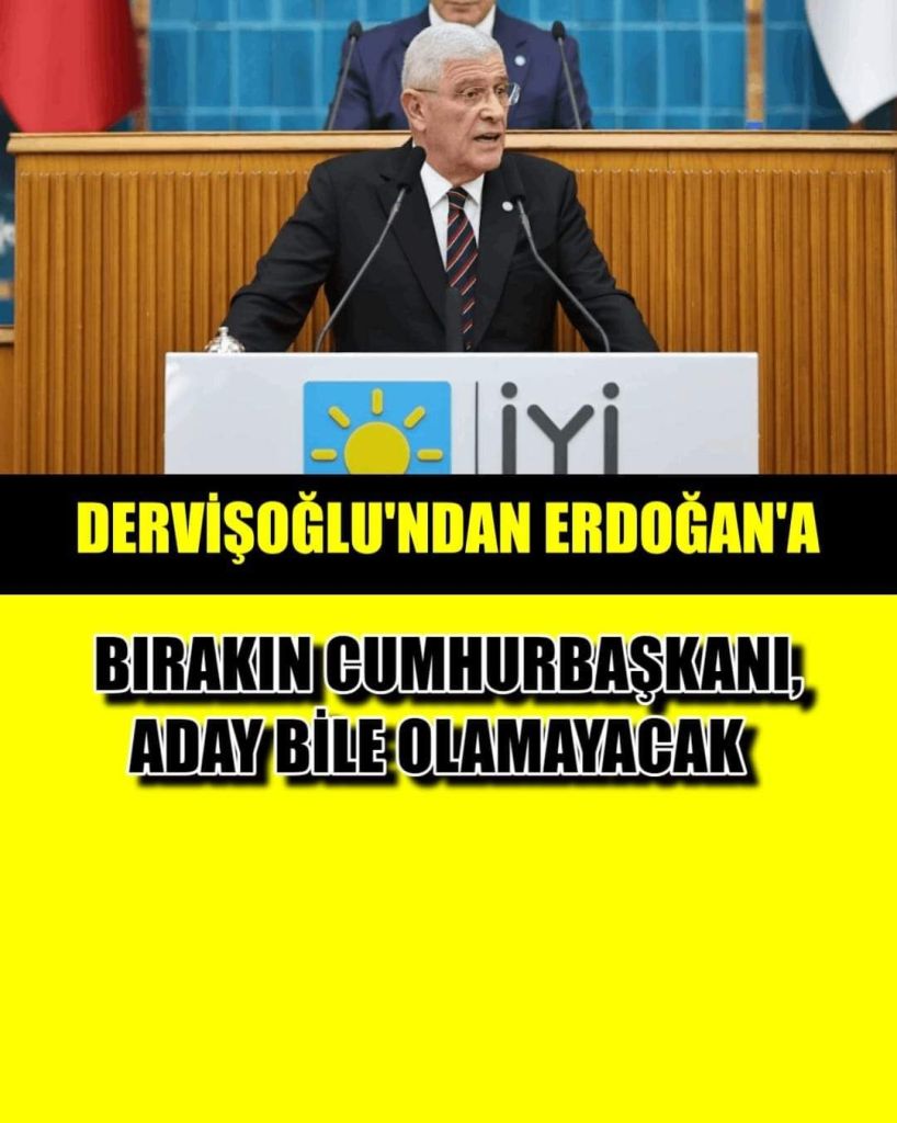 İYİ Parti lideri Dervişoğlu, partisinin grup toplantısında Cumhurbaşkanı Erdoğan’ı işaret ederek “Bir daha bırakın cumhurbaşkanı olmayı, muhalefet doğru yerde dursun, cumhurbaşkanlığına aday bile olamayacak” dedi.