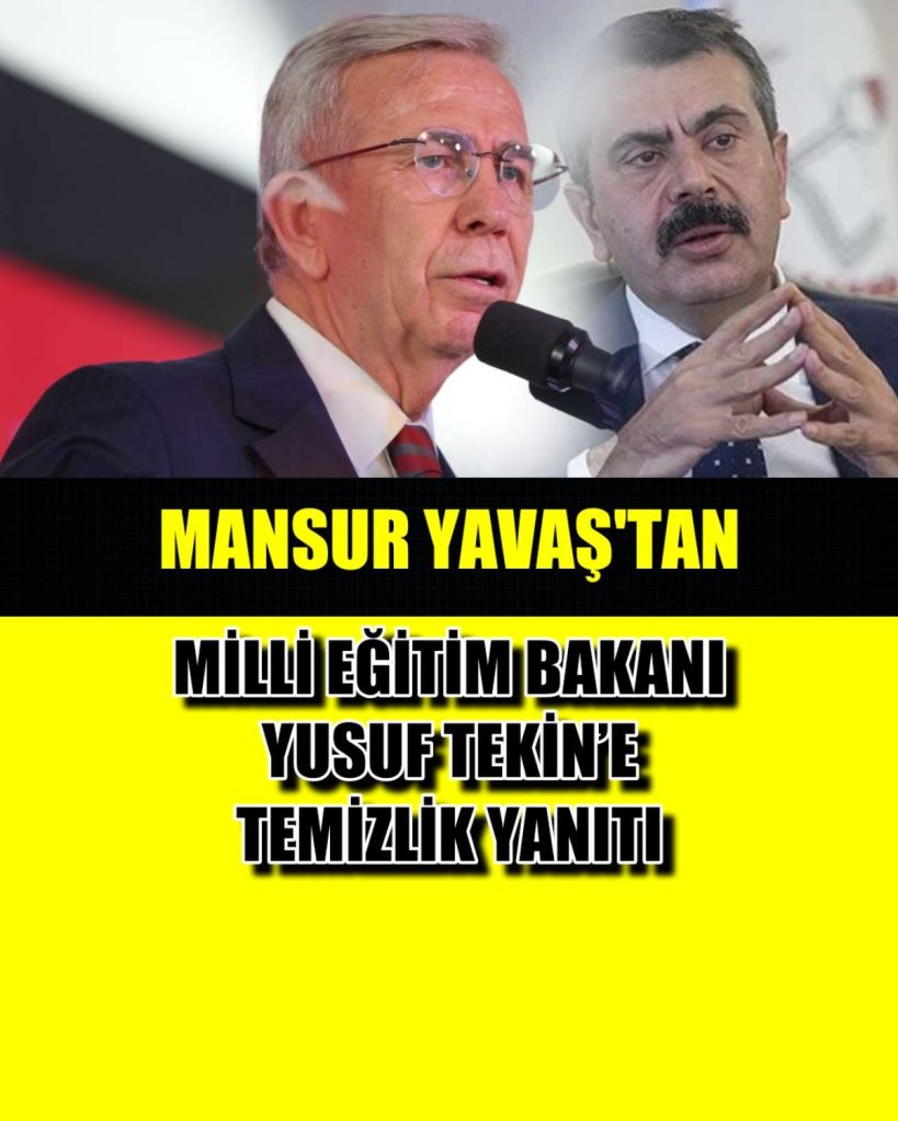 ABB Başkanı Mansur Yavaş, resmi sosyal medya hesabı X üzerinden Milli Eğitim Bakanı Yusuf Tekin’in “Büyükşehir belediye başkanı çıkıyor 2 bin 300 okulun 13 tanesini sadece 1 gün temizliyor, sonra ‘Ankara’daki bütün okulları temizledim’ diyor.” sözlerini yanıtladı.