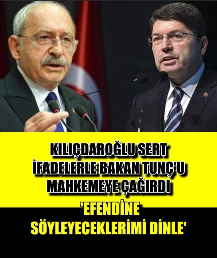 Bakan Tunç’a Kemal Kılıçdaroğlu’ndan yanıt geldi. Kılıçdaroğlu, “Eğer yüreğin yetiyorsa yarın mahkemeye gel ve efendine söyleyeceklerimi dinle, dinle belki ibret alırsın…” dedi.