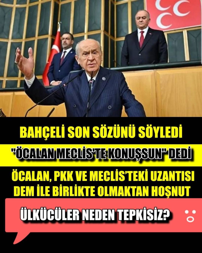 Bahçeli, 22 Ekim 2024 tarihinde grup toplantısında yaptığı konuşmada bölücü narko terör örgütü PKK’nın başı Öcalan’a çağrıda bulunmuştu. Bu çağrı, Bahçeli’nin son sözü: “Tecridi kaldırılırsa gelsin Meclis’te konuşsun, örgütün lağvedildiğini ilan etsin” dedi.