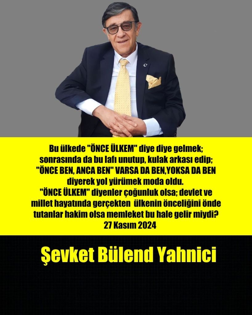 Bu ülkede “ÖNCE ÜLKEM” diye diye gelmek; sonrasında da bu lafı unutup, kulak arkası edip; “ÖNCE BEN, ANCA BEN” VARSA DA BEN,YOKSA DA BEN diyerek yol yürümek moda oldu.