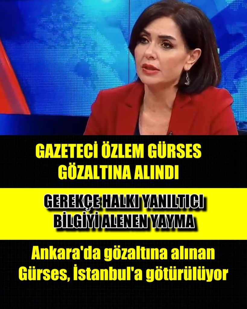 ODTÜ’nün vereceği bir ödül için Ankara’ya gelen Özlem Gürses, kaldığı otelden gözaltına alındı. Gürses, ilk işlemleri için Ankara Emniyet Müdürlüğü Güvenlik Şube’ye, ardından da soruşturmanın merkezi olan İstanbul’a götürülecek. CHP lideri Özel de konunun takibi için kurmaylarına talimat verdi