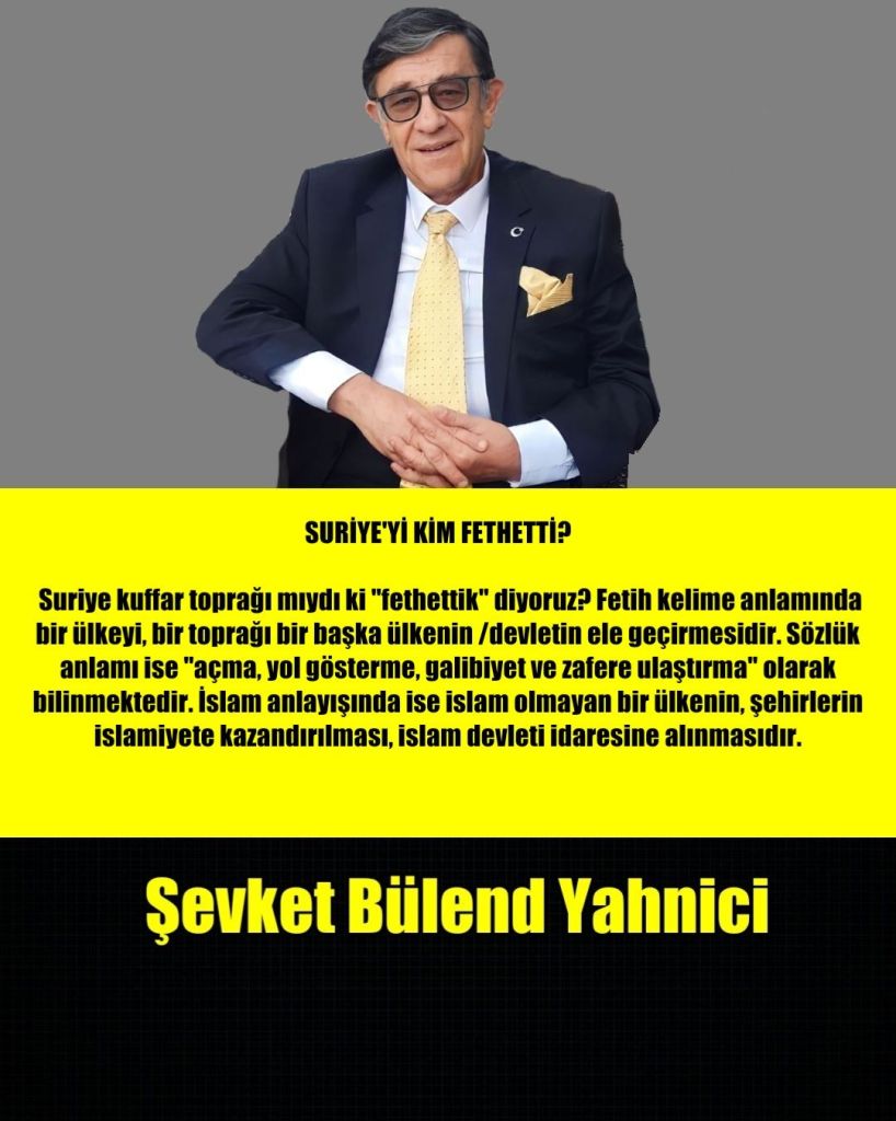 Suriye kuffar toprağı mıydı ki “fethettik” diyoruz? Fetih kelime anlamında bir ülkeyi, bir toprağı bir başka ülkenin /devletin ele geçirmesidir. Sözlük anlamı ise “açma, yol gösterme, galibiyet ve zafere ulaştırma” olarak bilinmektedir. İslam anlayışında ise islam olmayan bir ülkenin, şehirlerin islamiyete kazandırılması, islam devleti idaresine alınmasıdır.