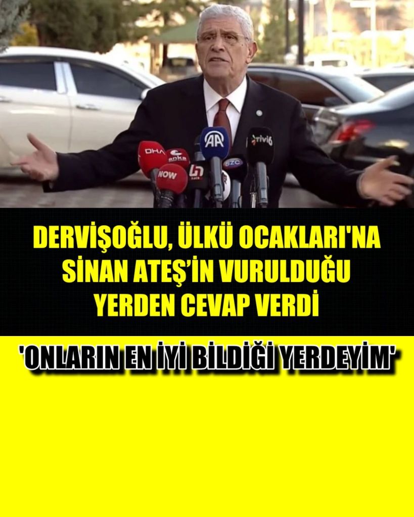 İYİ Parti lideri Müsavat Dervişoğlu, eski Ülkü Ocakları Başkanı Sinan Ateş’in suikasta uğradığı yerde Ülkü Ocakları Başkanı Ahmet Yiğit Yıldırım’a yanıt verdi. Dervişoğlu, “Her ahlaksızlığa cevap vermem” diyerek sözlerine başladı ve şunları söyledi:
