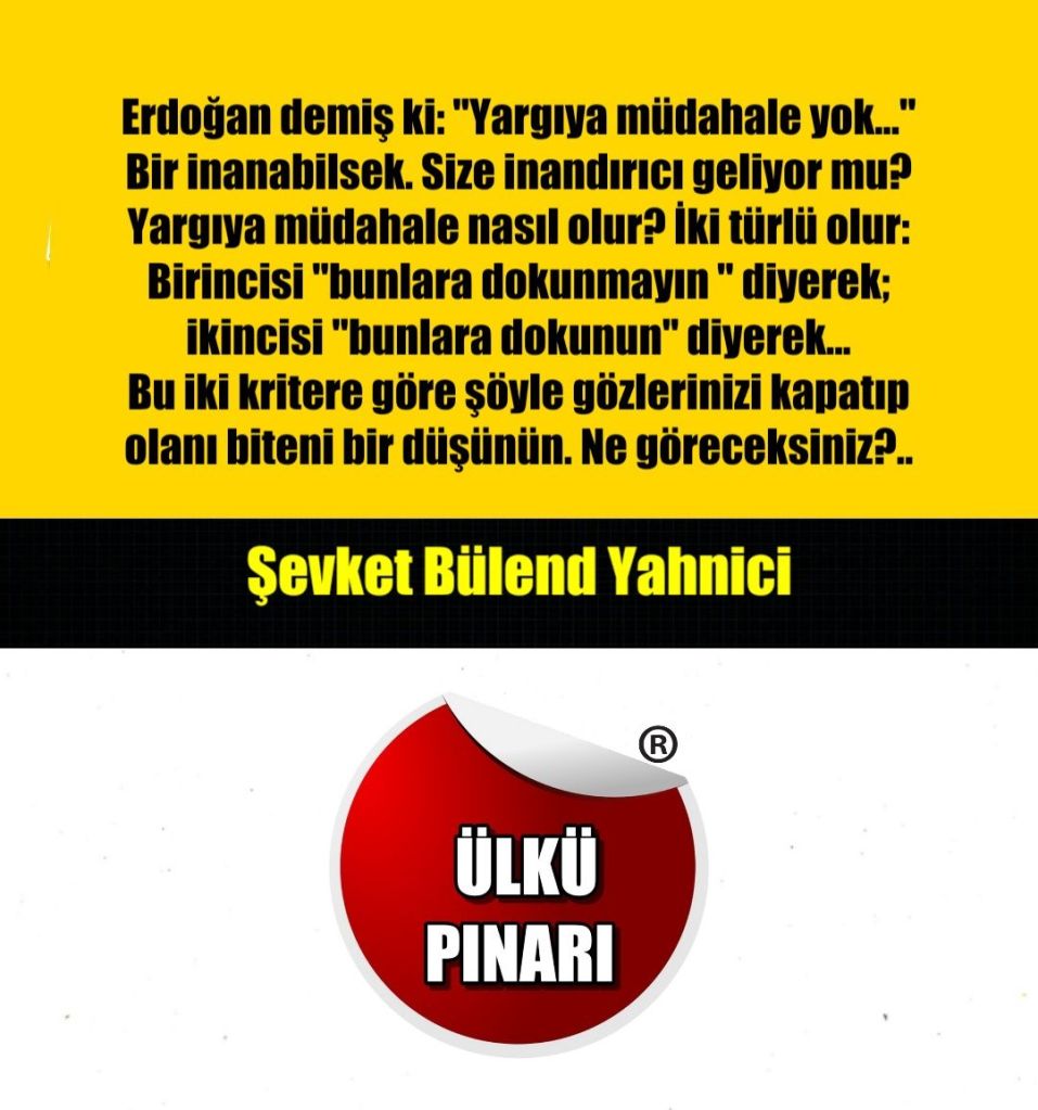 Yargıya müdahale nasıl olur? İki türlü olur: Birincisi “bunlara dokunmayın ” diyerek; ikincisi “bunlara dokunun” diyerek...