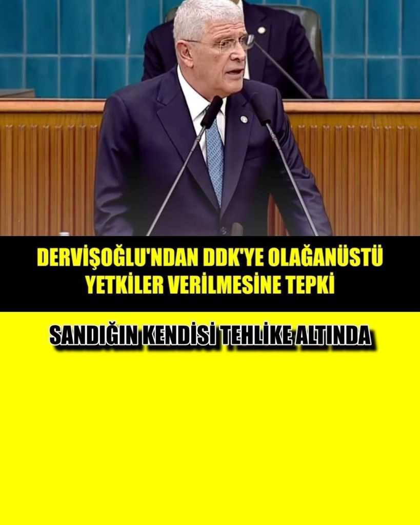 İYİ Parti lideri Dervişoğlu DDK’ya tanınan olağanüstü yetkilere tepki göstererek “Artık sandığın kendisi tehlike altındadır, İktidar muhaliflere DDK Kılıcı sallamaktadır” dedi.