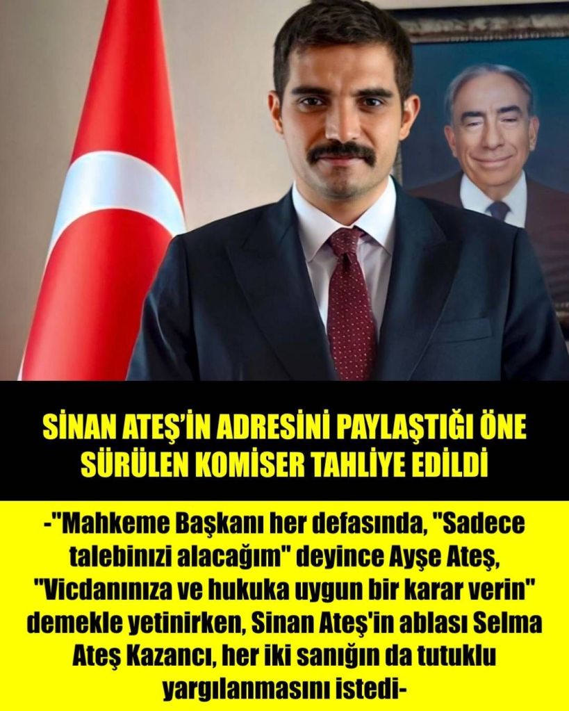 Ankara’da suikaste kurban giden Ülkü Ocakları Eski Genel Başkanı Sinan Ateş cinayeti davasında dosyaları telefon şifrelerini vermedikleri için ayrılan avukat Serdar Öktem ve Ankara eski Cinayet Büro Amiri Mustafa Ensar Aykal, hakim karşısına çıktı. Sinan Ateş’in adresini paylaştığı öne sürülen komiser Mustafa Ensar Aykal tahliye edildi. Bir sonraki duruşma tarihi ise 26 Haziran olarak belirlendi.