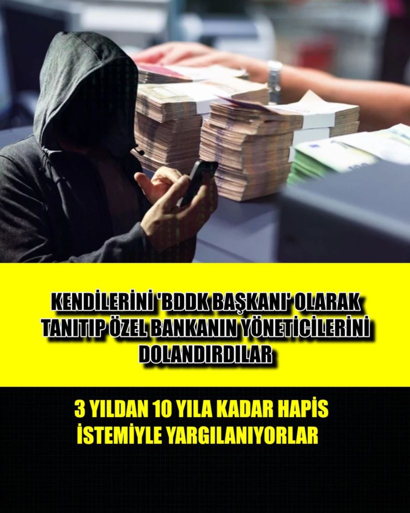 Özel bir bankanın yöneticileri, kendilerini “BDDK Başkanı” olarak tanıtan kişilerce dolandırıldı. Banka yöneticileri gerçeği anlayınca soluğu mahkemede aldı. Şüpheliler hakkında 3 yıldan 10 yıla kadar hapis istemiyle iddianame hazırlandı.