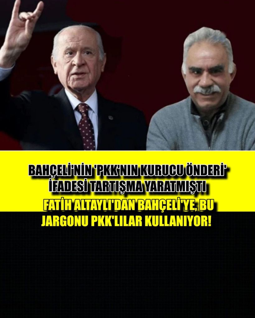 MHP Genel Başkanı Devlet Bahçeli’nin, PKK elebaşı Abdullah Öcalan için kullandığı “PKK’nın kurucu önderi” ifadesi tartışma yarattı. Gazeteci Fatih Altaylı, Bahçeli’nin sözlerine sert tepki göstererek dikkat çeken açıklamalarda bulundu.
