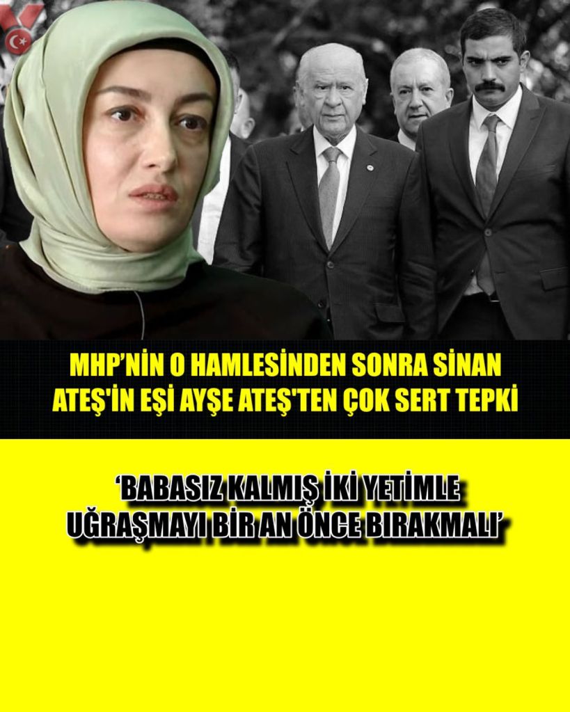 Suikasta uğrayan Ülkü Ocakları Eski Genel Başkanı Sinan Ateş’in eşi Ayşe Ateş, MHP’nin davaya katılma talebine sert sözlerle tepki gösterdi. Ateş “Babasız kalmış iki yetimle uğraşmayı bir an önce bırakmalı” dedi.