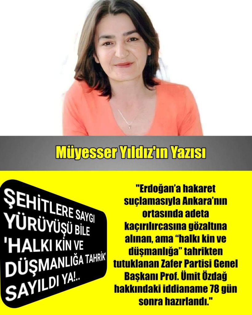 Erdoğan’a hakaret suçlamasıyla Ankara’nın ortasında adeta kaçırılırcasına gözaltına alınan, ama “halkı kin ve düşmanlığa” tahrikten tutuklanan Zafer Partisi Genel Başkanı Prof. Ümit Özdağ hakkındaki iddianame 78 gün sonra hazırlandı.