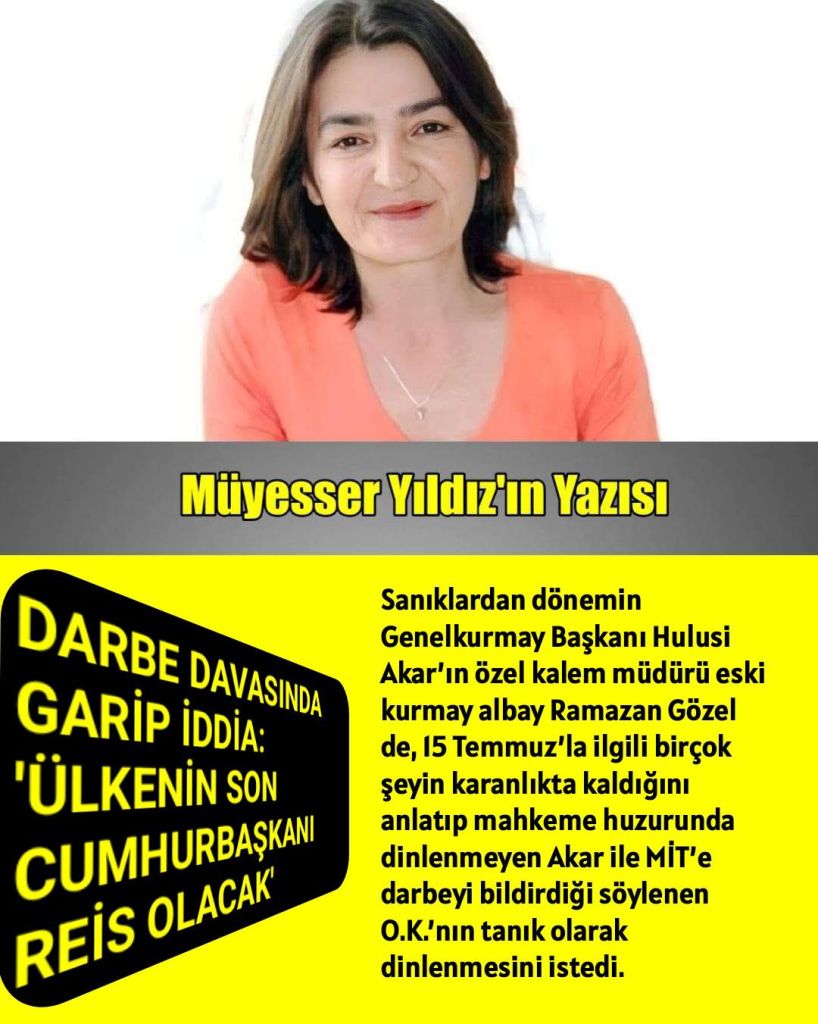 Sanıklardan dönemin Genelkurmay Başkanı Hulusi Akar’ın özel kalem müdürü eski kurmay albay Ramazan Gözel de, 15 Temmuz’la ilgili birçok şeyin karanlıkta kaldığını anlatıp mahkeme huzurunda dinlenmeyen Akar ile MİT’e darbeyi bildirdiği söylenen O.K.’nın tanık olarak dinlenmesini istedi.