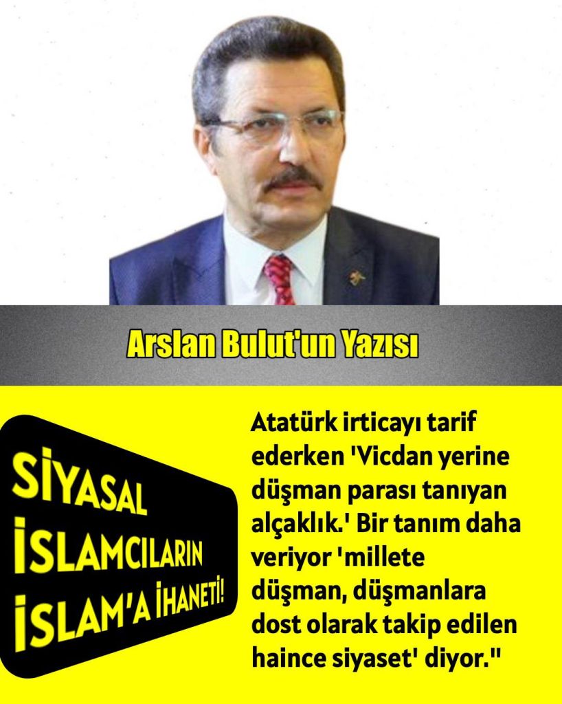 Atatürk irticayı tarif ederken ‘Vicdan yerine düşman parası tanıyan alçaklık.’ Bir tanım daha veriyor ‘millete düşman, düşmanlara dost olarak takip edilen haince siyaset’ diyor.”