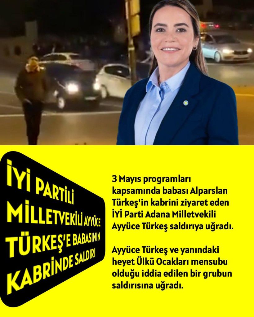“- Adana Milletvekilimiz babasının kabrini ziyarete gidiyor. Partimizin bir toplantısı vardı. Onun çıkışında kabre gidiyor. Gittiğinde kabrin etrafında 150 kişilik bir grup var. Ayyüce Hanımın danışmanları ciddi şekilde darp edilmiş. Kabre ulaşmayı başarmışlar.