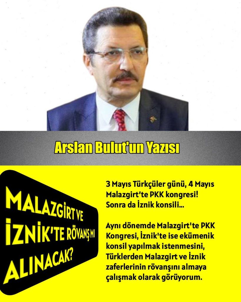 Aynı dönemde Malazgirt’te PKK Kongresi, İznik’te ise ekümenik konsil yapılmak istenmesini, Türklerden Malazgirt ve İznik zaferlerinin rövanşını almaya çalışmak olarak görüyorum.