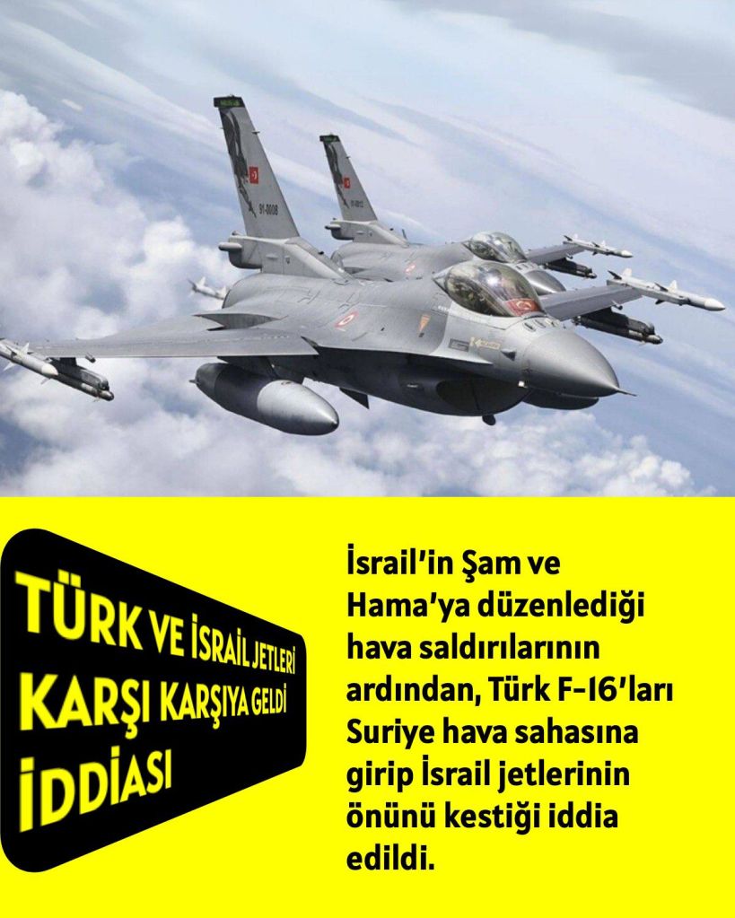 İsrail’in Şam ve Hama’ya düzenlediği hava saldırılarının ardından, Türk F-16’ları Suriye hava sahasına girip İsrail jetlerinin önünü kestiği iddia edildi.