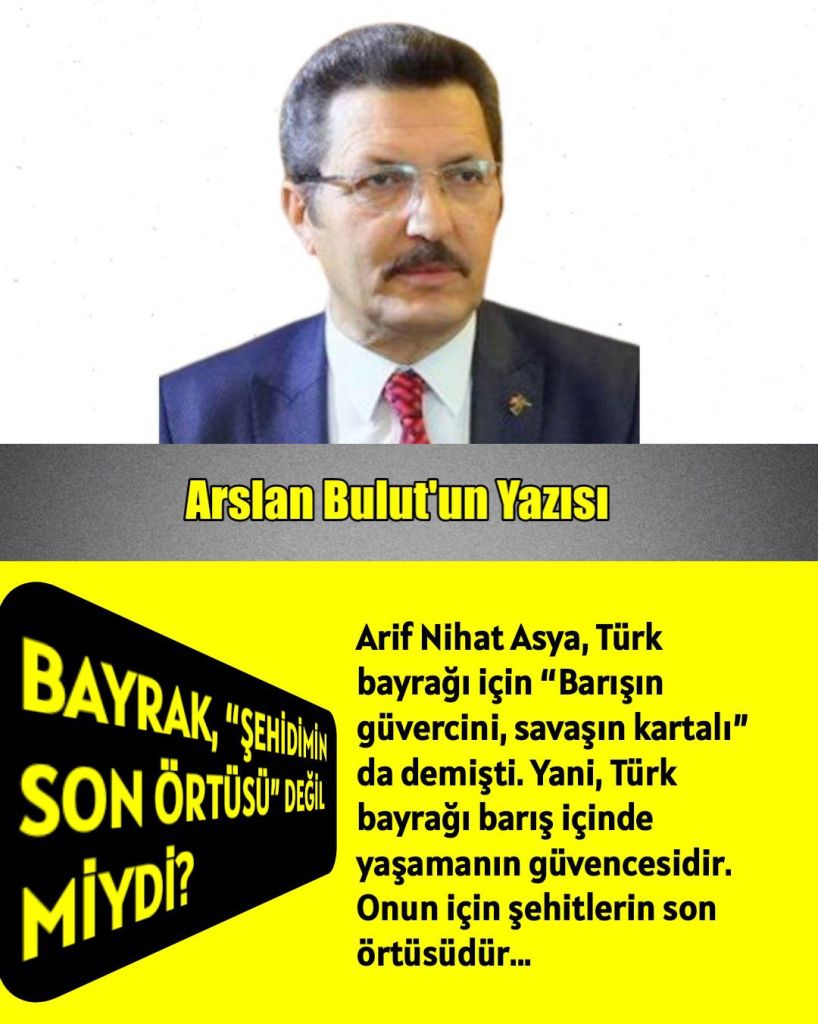 Arif Nihat Asya, Türk bayrağı için “Barışın güvercini, savaşın kartalı” da demişti. Yani, Türk bayrağı barış içinde yaşamanın güvencesidir. Onun için şehitlerin son örtüsüdür…