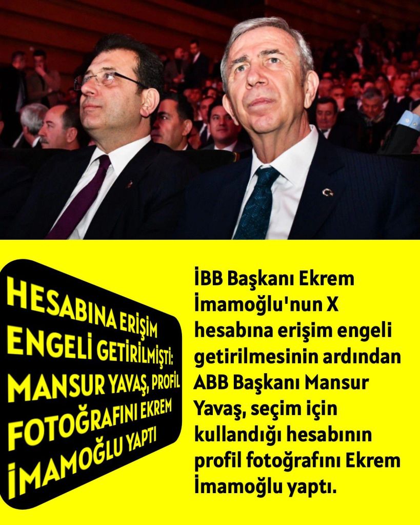 İmamoğlu’nun X hesabına getirilen erişim engeli tepkilere neden olurken, Ankara Büyükşehir Belediye (ABB) Başkanı Mansur Yavaş da, seçim için kullandığı Mansur Yavaş 2025 hesabının profil fotoğrafını Ekrem İmamoğlu yaptı.