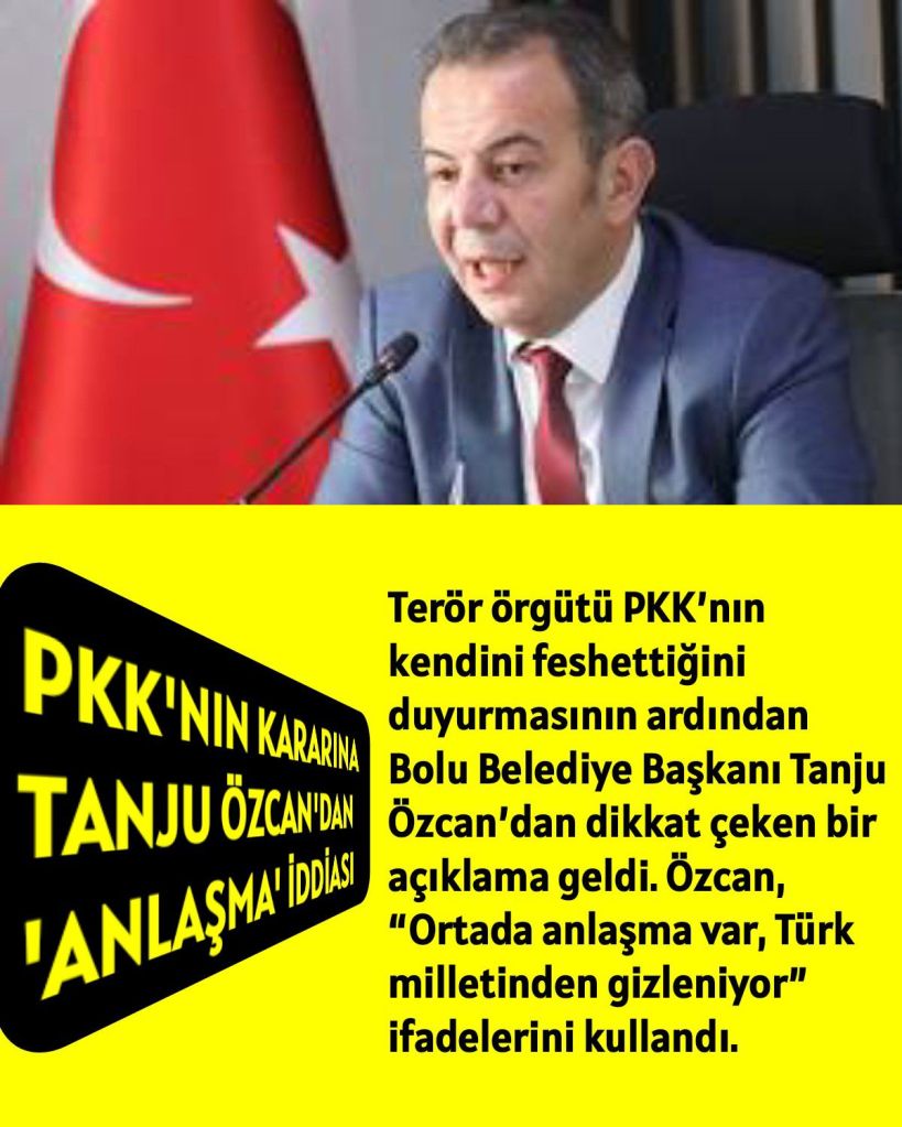 Terör örgütü PKK’nın kendini feshettiğini duyurmasının ardından Bolu Belediye Başkanı Tanju Özcan’dan dikkat çeken bir açıklama geldi. Özcan, “Ortada anlaşma var, Türk milletinden gizleniyor” ifadelerini kullandı.