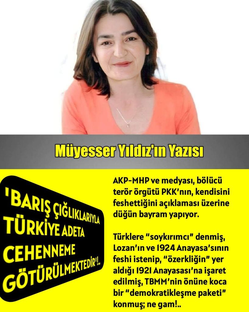 “Bu ikilinin müşterek çabaları altında çözüm ve barış çığlıklarıyla Türkiye adeta cehenneme götürülmektedir.”