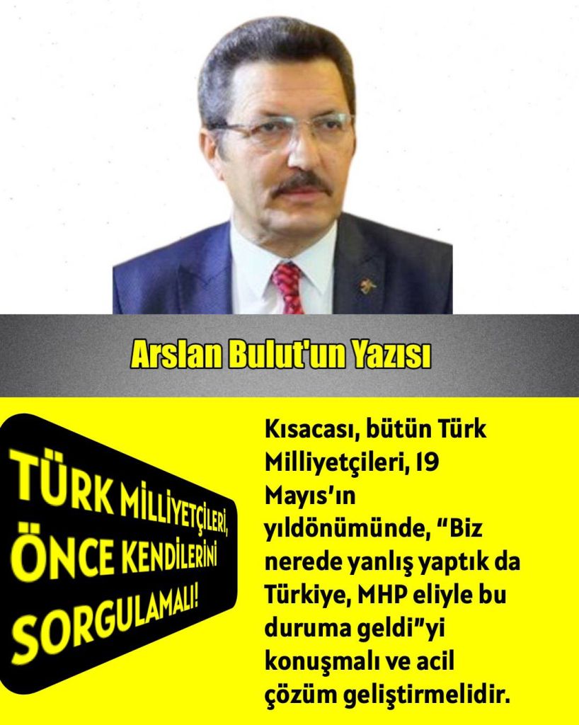 Kısacası, bütün Türk Milliyetçileri, 19 Mayıs’ın yıldönümünde, “Biz nerede yanlış yaptık da Türkiye, MHP eliyle bu duruma geldi”yi konuşmalı ve acil çözüm geliştirmelidir.