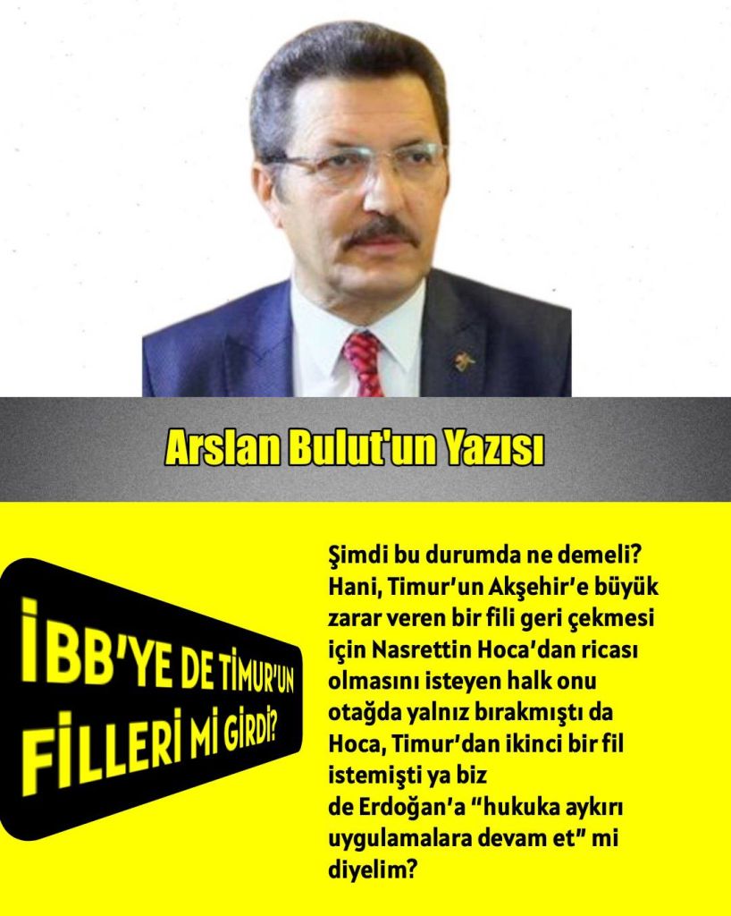 Şimdi bu durumda ne demeli? Hani, Timur’un Akşehir’e büyük zarar veren bir fili geri çekmesi için Nasrettin Hoca’dan ricası olmasını isteyen halk onu otağda yalnız bırakmıştı da Hoca, Timur’dan ikinci bir fil istemişti ya biz de Erdoğan’a “hukuka aykırı uygulamalara devam et” mi diyelim?