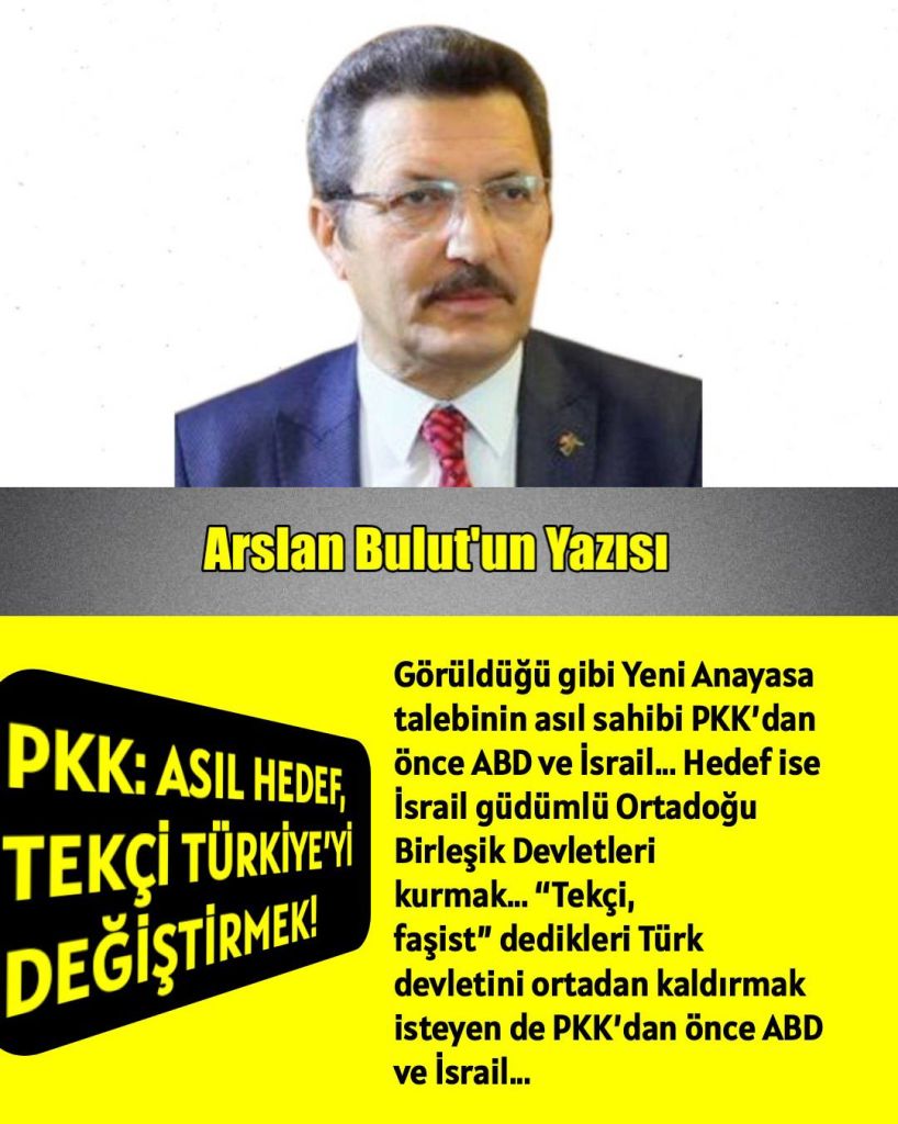 Görüldüğü gibi Yeni Anayasa talebinin asıl sahibi PKK’dan önce ABD ve İsrail… Hedef ise İsrail güdümlü Ortadoğu Birleşik Devletleri kurmak… “Tekçi, faşist” dedikleri Türk devletini ortadan kaldırmak isteyen de PKK’dan önce ABD ve İsrail…