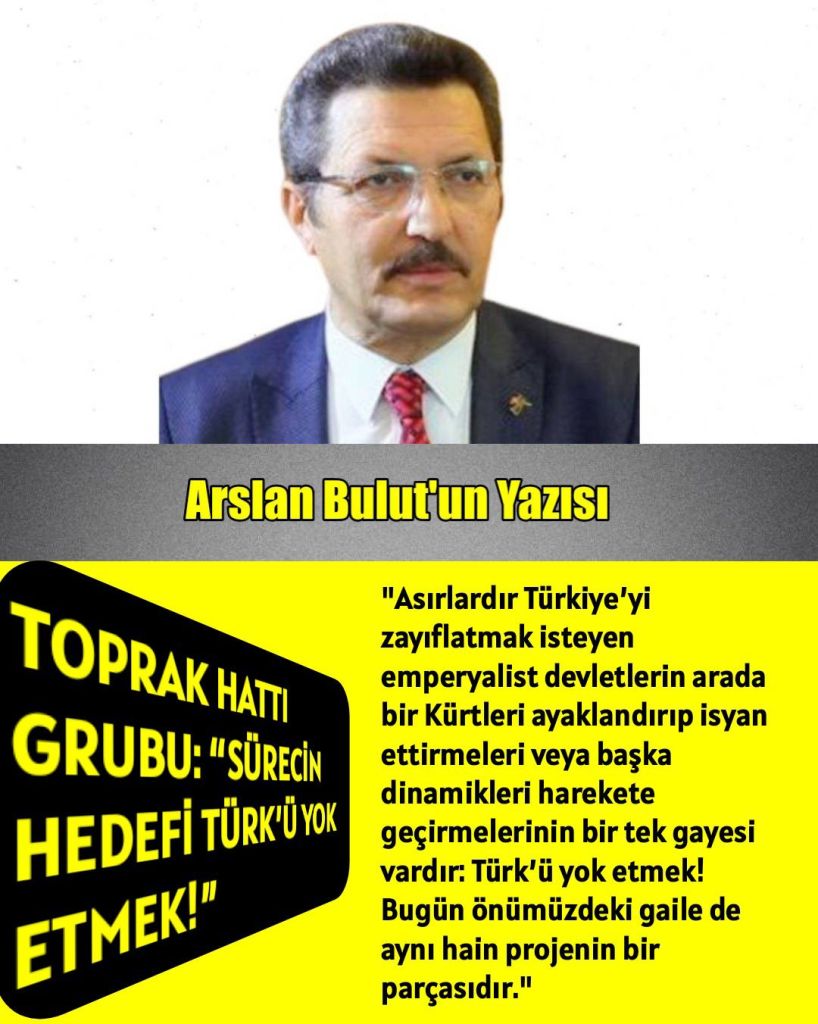 - Asırlardır Türkiye’yi zayıflatmak isteyen emperyalist devletlerin arada bir Kürtleri ayaklandırıp isyan ettirmeleri veya başka dinamikleri harekete geçirmelerinin bir tek gayesi vardır: Türk’ü yok etmek! Bugün önümüzdeki gaile de aynı hain projenin bir parçasıdır.