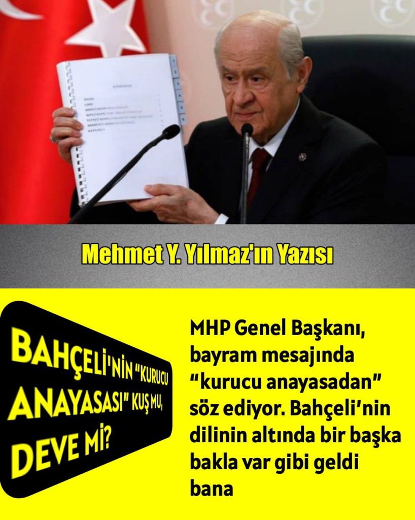 MHP Genel Başkanı, bayram mesajında “kurucu anayasadan” söz ediyor. Bahçeli’nin dilinin altında bir başka bakla var gibi geldi bana