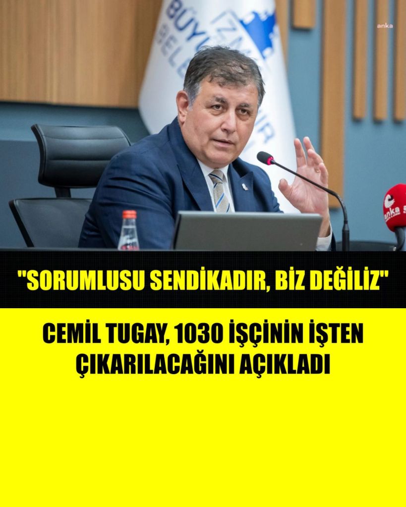 İzmir Büyükşehir Belediye Başkanı Cemil Tugay, 1030 işçinin işten çıkarılacağını açıkladı, “Sorumlusu sendikadır” dedi.