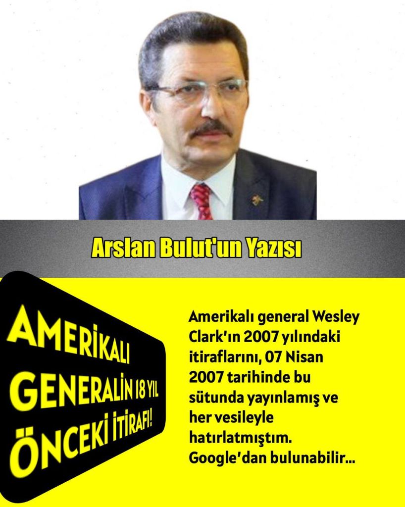 Amerikalı general Wesley Clark’ın 2007 yılındaki itiraflarını, 07 Nisan 2007 tarihinde bu sütunda yayınlamış ve her vesileyle hatırlatmıştım. Google’dan bulunabilir…