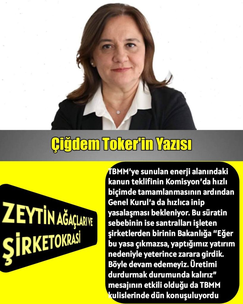 TBMM’ye sunulan enerji alanındaki kanun teklifinin Komisyon’da hızlı biçimde tamamlanmasının ardından Genel Kurul’a da hızlıca inip yasalaşması bekleniyor. Bu süratin sebebinin ise santralları işleten şirketlerden birinin Bakanlığa “Eğer bu yasa çıkmazsa, yaptığımız yatırım nedeniyle yeterince zarara girdik. Böyle devam edemeyiz. Üretimi durdurmak durumunda kalırız” mesajının etkili olduğu da TBMM kulislerinde dün konuşuluyordu