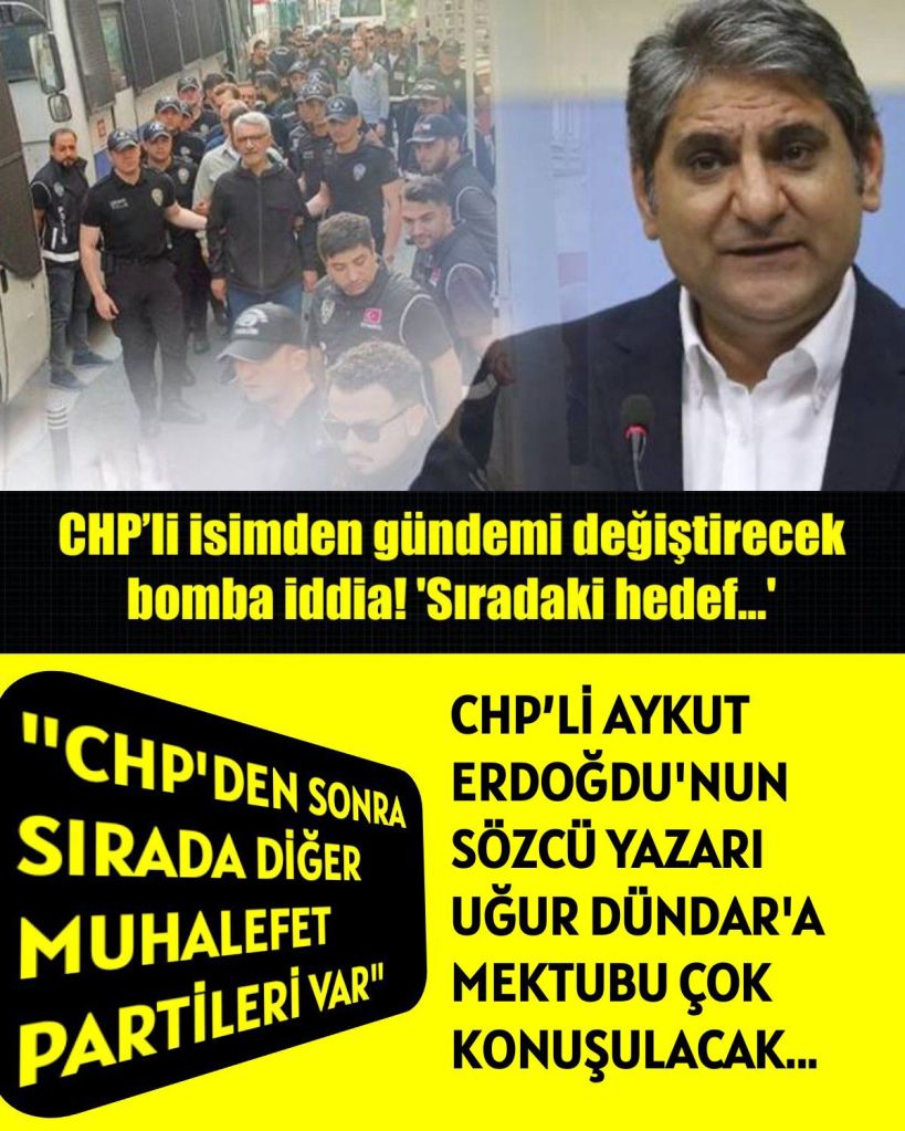 19 Mart’ta yapılan İBB operasyonunda itirafçıların ifadeleri sonrası yeni yapılan operasyonla tutuklanan CHP’nin önceki dönem milletvekili Aykut Erdoğdu, Sözcü yazarı Uğur Dündar’a mektup yazdı. Dündar ise bugünkü köşe yazısında mektubu paylaştı. Erdoğdu, cezaevindeki kötü koşulları yazısında aktarırken, CHP’ye yapılan operasyonun aynısının diğer muhalefet partililerine de yapılacağını iddia etti.